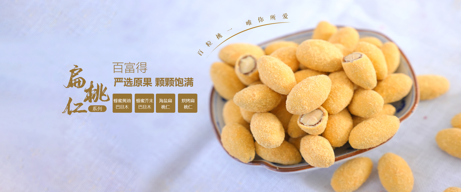 威海百富得食品有限公司,是一家及生產銷售于一體的堅果制品公司.經過20多年的發展,公司一直致力于堅果制品的創新開發,本著有擔當為消費者負責的姿態,提供健康,美味,有營養的高質量堅果制品,堅守質量至上的原則?